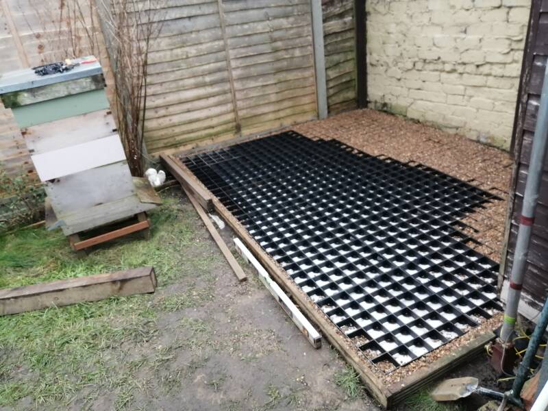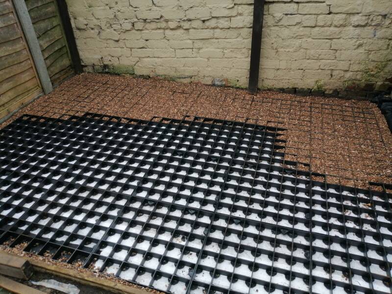I started off by marking out the area and leveling the ground for a 9 x 6 ft room. I dug out wet sticky mud and started adding a pea gravel to create a base. then compacted it down with a compactor which i borrowed. then i purchased what they call probase grids to create a shed base that you fill wtih pea gravel. ( around 20 bags ) This can withstand quite a lot of weight to create a good solid base. This was because it was cheeper and easier option for me insted of a concrete pad.