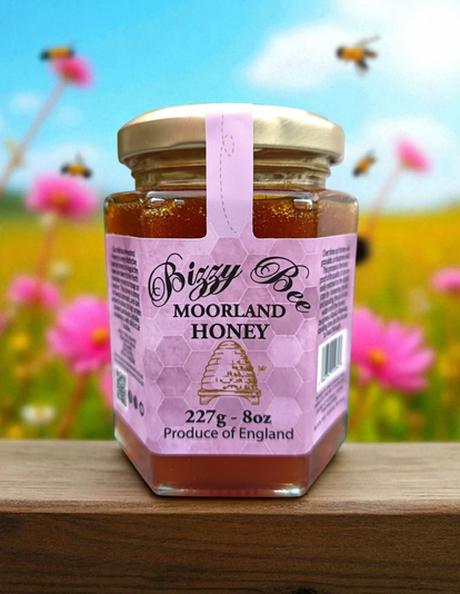 Our Delicious moorland honey is a very distinctive tasting honey in August the bees are taken to the North Yorkshire moors to forage on the main flowering Heather (Ling) flower.