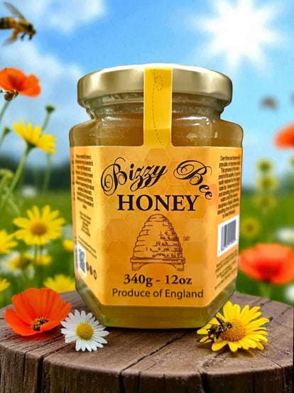 Our delicious bizzy bee pure runny lincolnshire honey is very floral and golden, nectar collected from garden flowers wild hedges, and surrounding trees.